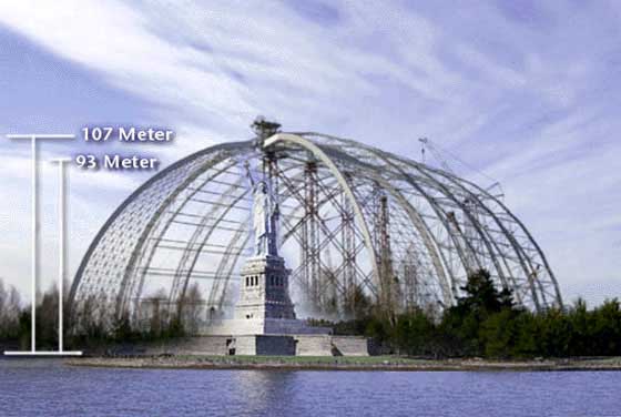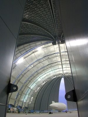 Фирма CargoLifter обанкротилась. ... опыт постройки огромного ангара длиной 360 метров, шириной 210 метров и высотой 107 метров сейчас активно используются при разработке нового английского высотного дирижабля "StarSat".