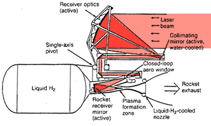 Простите - какого ещё лазера?? На разгоняемом КА? Кипятильник солнечный - запредельно напряжённая конструкция? И какой... приемлемый к.п.д . может быть у лазера с солнечной накачкой?