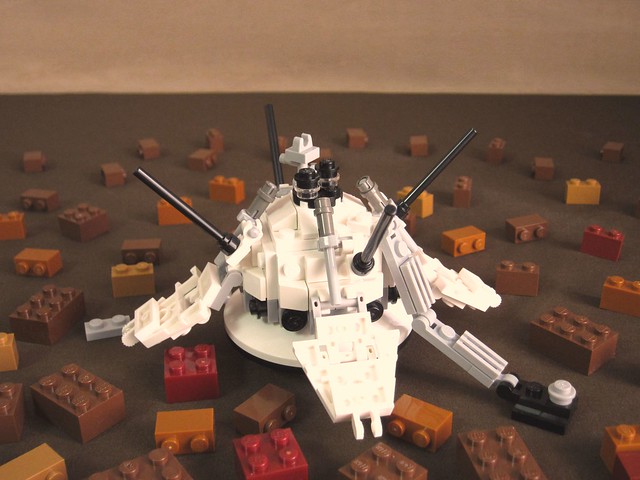 посмотрел я вживую на СА Марс-3 - и теперь уверен, что он не может стоять на "усах" антенны в горизонтальном положении. Они просто неспособны удержать аппарат - это что-то наподобии рулеточной ленты, малейшее усилие ее сгибает. Соответственно, все интерпретации (естественно, включая мои) с горизонтально ориентированной картинкой - не имеют отношения к реальности. Увы.