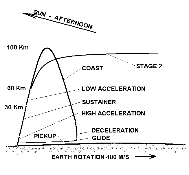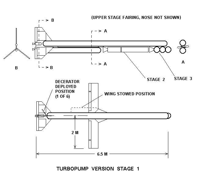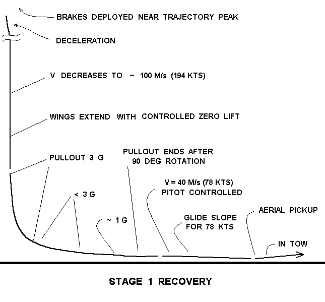 Предлагается использовать трехступенчатый носитель, выводящий на отлетную траекторию аппарат массой 450 г. Первая ступень с ЖРД тягой 1000 фунтов (453 кгс), (топливо на всех ступенях - жидкий пропан, окислитель - жидкий кислород) оборудована также твердотопливным бустером тягой 2000 фунтов, который совместно с ЖРД обеспечивает отрыв от стола и разгон до 250 м/с на высоте 6 км. ЖРД далее обеспечивает подъем до высоты 60 км, где происходит отделение второй ступени. Первая ступень, оборудованная складным крылом, после этого производит вход в атмосферу и переходит в планирующий полет. На этом участке должен производиться ее воздушный подхват небольшим самолетом: