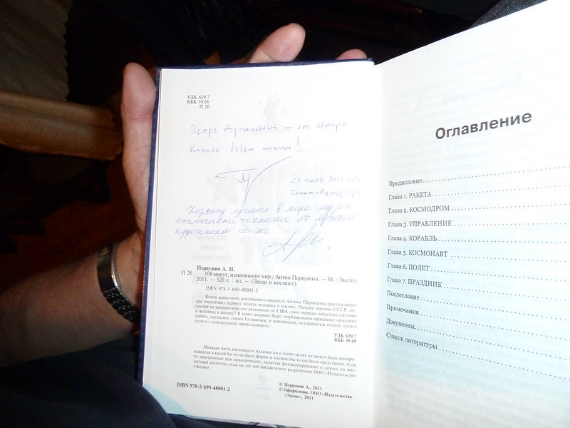 О будущем российской космонавтики нам поведал широко известный человек. Тонкими трепетными пальцами художника он сначала надписал подарочный экземпляр своей книги своему же соавтору (мы ничего не поняли, они общались иероглифами).