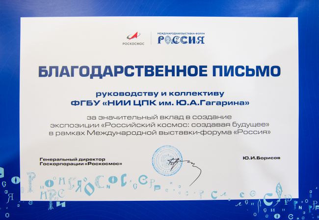ЦитироватьЦентр подготовки космонавтов наградили за активное участие в международной выставке-форуме «Россия»