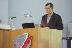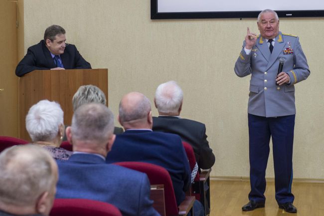 Доклад начальника управления научно-прикладных исследований проблем подготовки космонавтов ЦПК, доктора технических наук Владимира Дикарева был посвящён такой актуальной теме как опыт поддержания деятельности экипажей пилотируемых космических комплексов по выполнению целевых операций управления человеко-машинными системами.