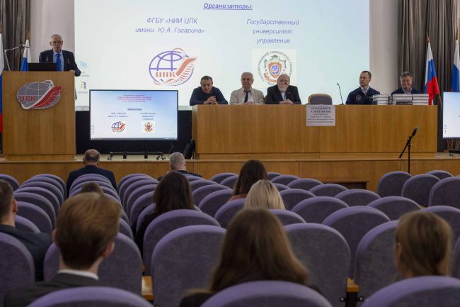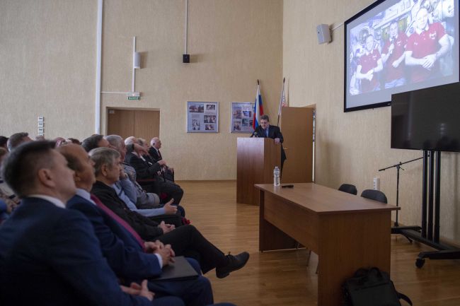 Научную часть заседания открыло выступление начальника Центра подготовки космонавтов Максима Харламова: