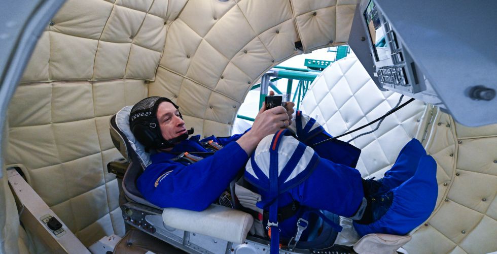 Для этого перед тренировками на центрифуге, в барокамере, на вестибулярном кресле и ортостоле специалисты закрепили портативные лазерные анализаторы «Лазма ПФ» на голове, руках и ногах космонавта для получения показателей перфузии, то есть прохождения крови через ткани организма.
