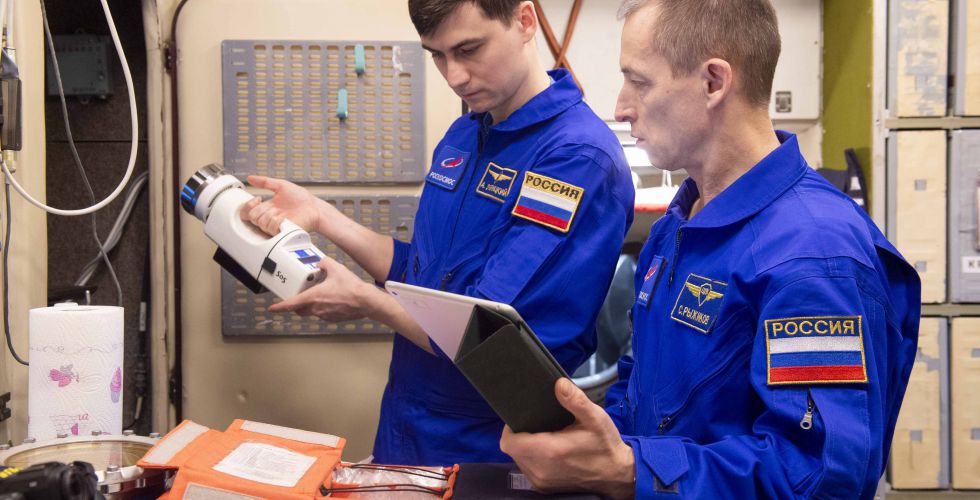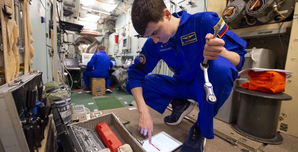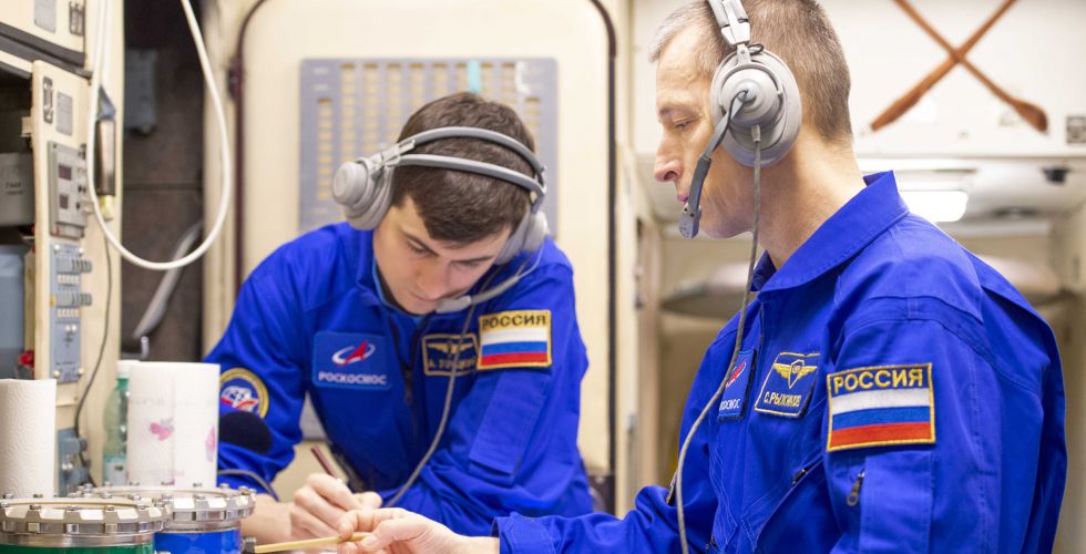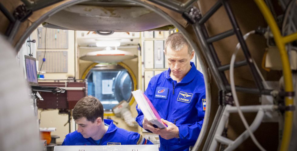 Сергей Рыжиков и Алексей Зубрицкий начали утро на станции с её осмотра и перезагрузки бортовой вычислительной системы. Затем они участвовали в конференции по планированию с Центром управления полётами — в данном случае, с бригадой инструкторов ЦПК.