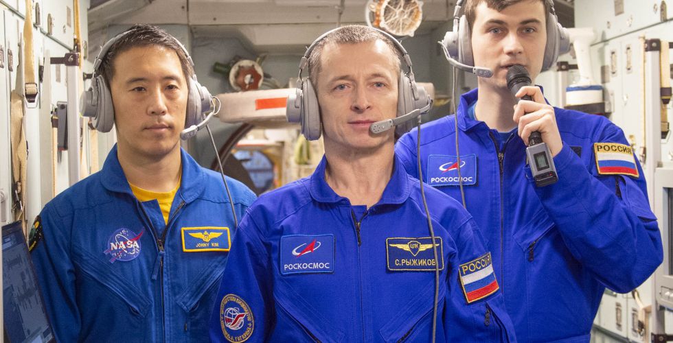 По традиции, перед началом работы космонавты и астронавты ответили на вопросы представителей средств массовой информации. Алексею Зубрицкому и Джонатану Киму предстоит совершить первый космический полёт, поэтому журналистов интересовало, как оценивает командир Сергей Рыжиков уровень их подготовки.