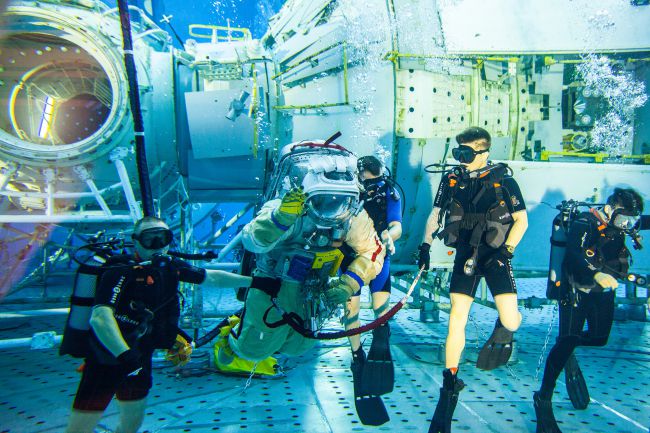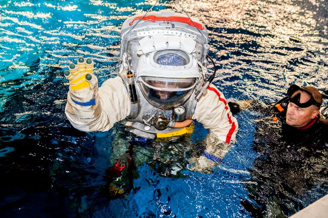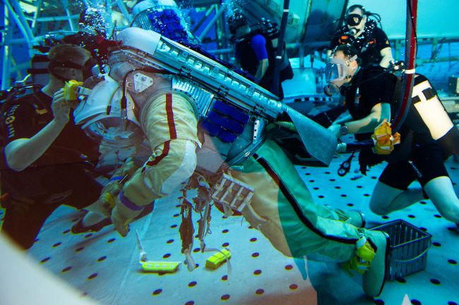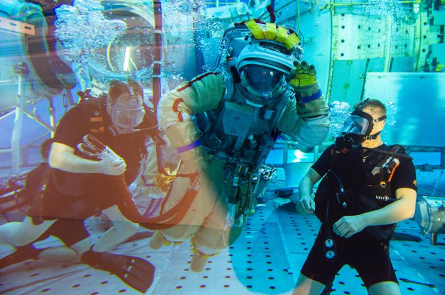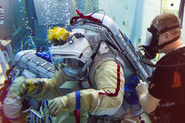 Во время тренировок по отработке действий в открытом космосе бригада водолазов обеспечивает безопасность операторов. Рядом с каждым космонавтом под водой находится не менее двух человек. Они работают под водой по 4–5 часов, постоянно меняя глубину в диапазоне 10 метров, что связано с ограниченным запасом воздуха в баллонах.