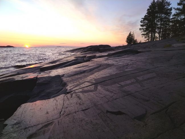 – Наблюдать «кровавую» луну было действительно интересно. Там место очень древнее, некоторым рисункам около 5–6 тысяч лет. И сам ландшафт очень красивый:  мыс «Бесов нос», озеро и еще несколько мысов, расположенных как островки.  Сразу после заката поднялась красная  Луна: не всегда она появляется прямо напротив Солнца.
