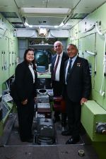 Дмитрий Баканов осмотрел тренажеры корабля «Союз МС», транспортного пилотируемого корабля нового поколения, российского сегмента Международной космической станции, гидролабораторию, где космонавты отрабатывают будущие выходы в открытый космос, и центрифугу.