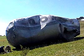 Так вот ступень которую они тянули была центральным блоком от Союза. СОВЕРШЕННО ЦЕЛЫМ! Оба бака вместе, переходной фермы к третьей ступени правда нет, но переднее днище совершенно целое только слегка помятое. Тащили они её задом наперёд за двигательный отсек а снимали сзади то есть со стороны переднего днища, так что я не разглядел в каком состоянии двигательный отсек. Но в остальном вся ступень была совершенно целая, только слегка помятая. Это она упала в лес в горной местности. Вот такое чудо.