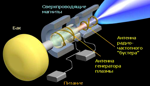 Цитировать.............Проведенное сравнение различных типов ЭРД показывает, что наиболее рациональным решением задачи создания ракетного двигателя мощностью 100 кВт и более является разработка безэлектродного плазменного ракетного двигателя (БПРД). Создание и нагрев плазмы внутри такого двигателя осуществляется бесконтактно, с помощью ввода ВЧ или СВЧ мощности. БПРД обладает высокими характеристиками и позволяет обеспечить требуемый ресурс для решения задач дальнего космоса.