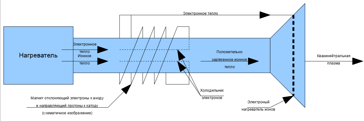 А я такое предлагал пару лет назад. Это практически тоже самое. Тут есть и генератор плазмы, и поток ионов и сепаратор электронов.