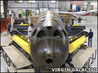 Цитировать...По словам представителей Virgin Galactic, строительство SpaceShipTwo (что можно перевести как "КосмическийКорабльДва") завершено на 60 процентов и будет окончено к 2010. При этом тестовые полеты корабля начнутся уже в июне этого года, а коммерческие - спустя 12 месяцев после испытаний....