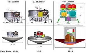 При грубой оценке щит увеличенный с 18 м до 30 м при том же угле вершины конуса даст площадь поверхности для торможения в атмосфере большую примерно в 2.77 раза. При сохранении одинакового соотношения тормозящего аэродинамического усилия и массы корабля (без учёта аэродинамического щита) будем иметь массу ПН в 138.5 т.  массу  Если ориентироваться на современные разработки, то масса российского марсианского взлетно-посадочного комплекса "Камбала" закладывалась на уровне 35-40 т, масса жилого отсека в американском проекте [color=var(--color-emphasized,#101418)]Deep Space Habitat