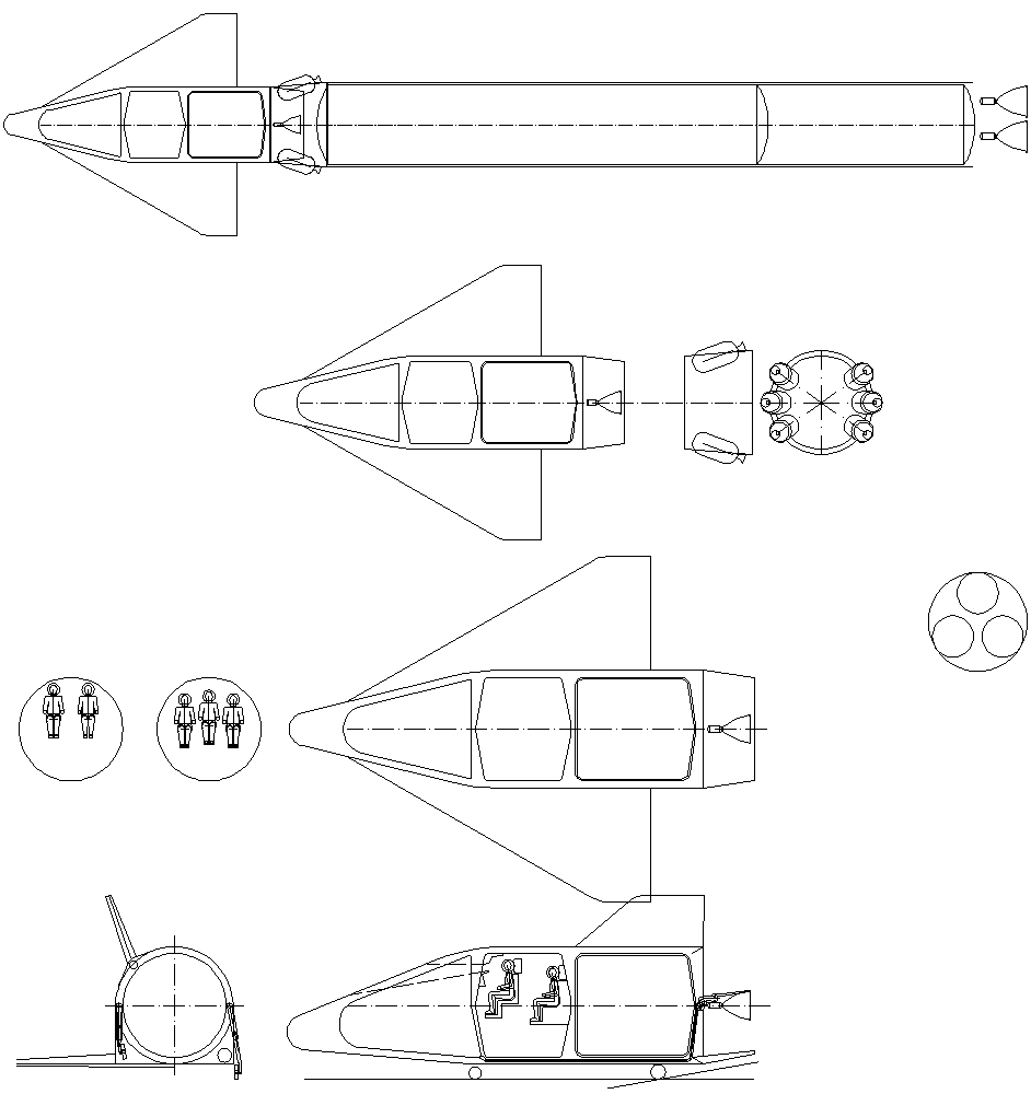 Поэтому при задумке прожекта ориентир был только один - как Союз, только подешевле, проще, многоразовей и с возможностью достаточно безболезненного увеличения грузо- и пассажировместимости от номинала.