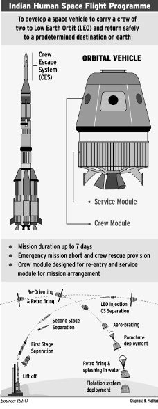 Uusing ISRO's Geosynchronous Satellite Launch Vehicle MkIII rocket to launch the capsule, the organisation's chairman G Madhavan Nair says preliminary study work has been under way. He adds that the agency has had discussions with Russia's Federal Space Agency, which helped China with its manned space programme. Nair says that the capsule would be an entirely domestic design and that Russia could provide "test facilities and the astronaut training we need".