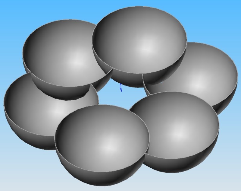 Имеем два твоих пересекающихся цилиндрических бака со сферическими днищами. И два сферических бака (это для сравнения). В сферических баках пересечение идет по окружности. Давление в баках примерно одинаковое, т.е. на части внутри этой окружности давление уравновешивается. Т.е. растяжение по контуру, представляющему собой окружность, идет равномерно, и все в норме.