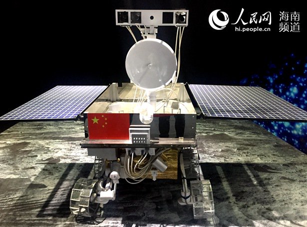 Models of Tiangong-2 docked with Shenzhou-11 and the Yutu lunar rover at Wenchang Launch Centre space exhibition