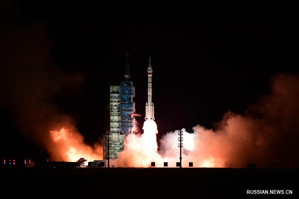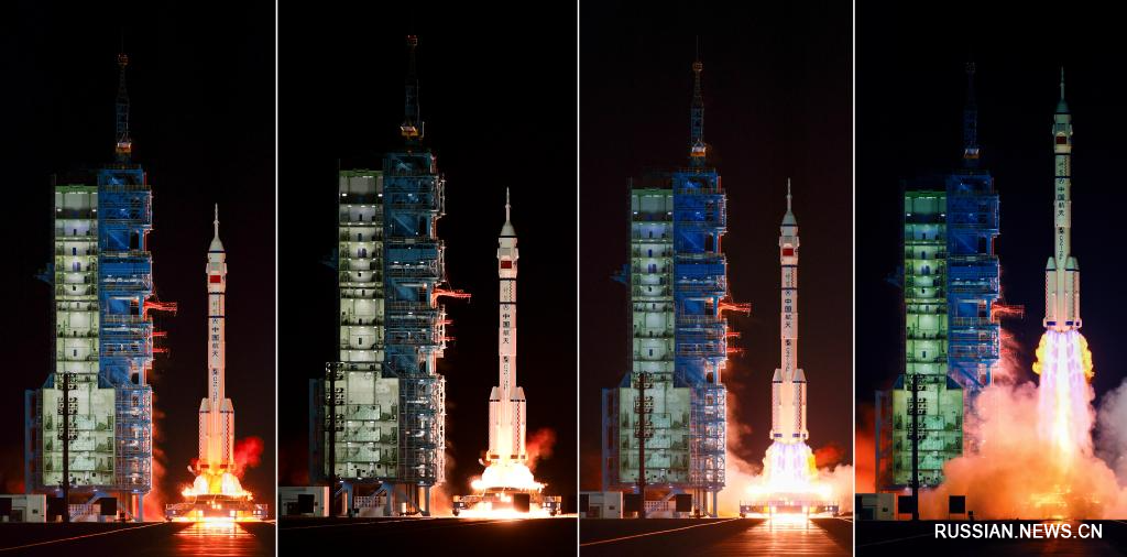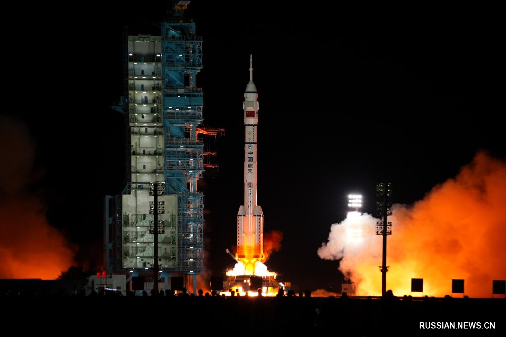 Космический корабль, находящийся на вершине ракеты-носителя "Чанчжэн-2F", стартовал с космодрома Цзюцюань на северо-западе Китая.