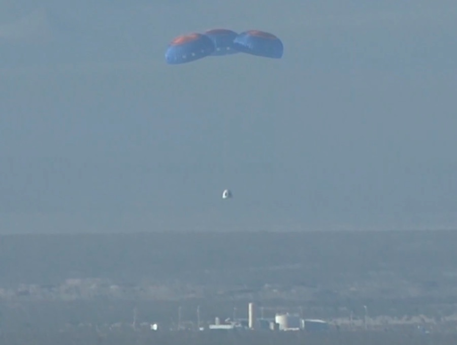 Blue Origin's capsule descends under parachutes. Credit: Blue Origin