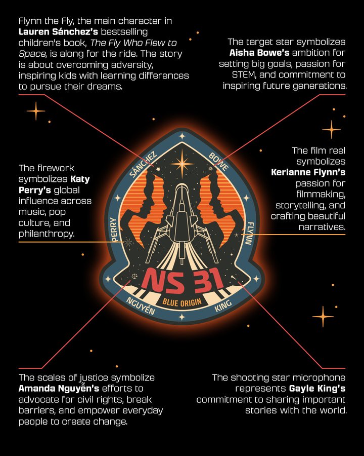 Blue Origin has released the NS-31 mission patch. A few of the symbols embedded include: