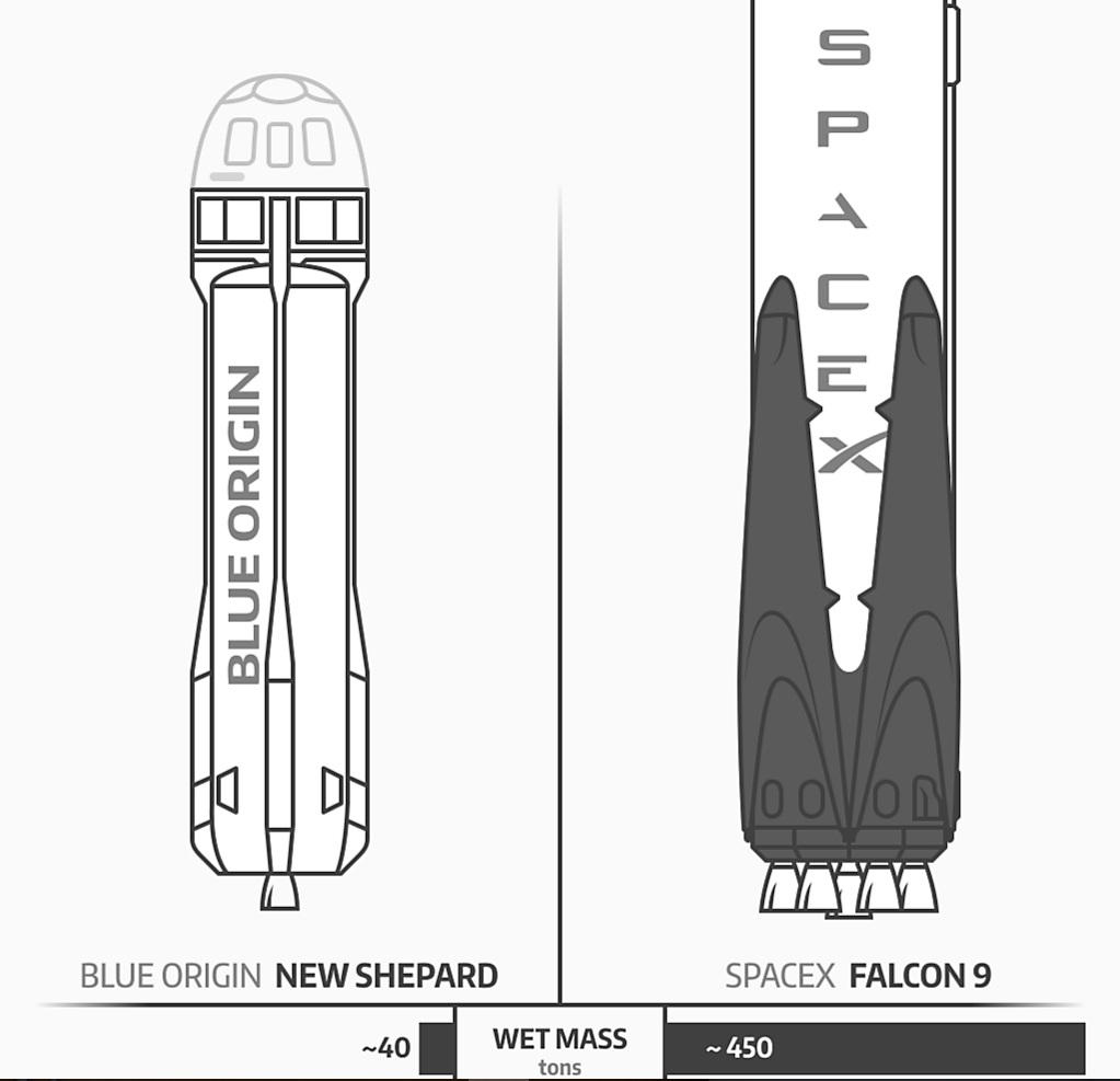 У орбитального носителя Безоса вполне обычные для ракеты пропорции. Конечно удлиннение меньше чем у Фалкона, но не в 3 раза как у Нью Шепарда.