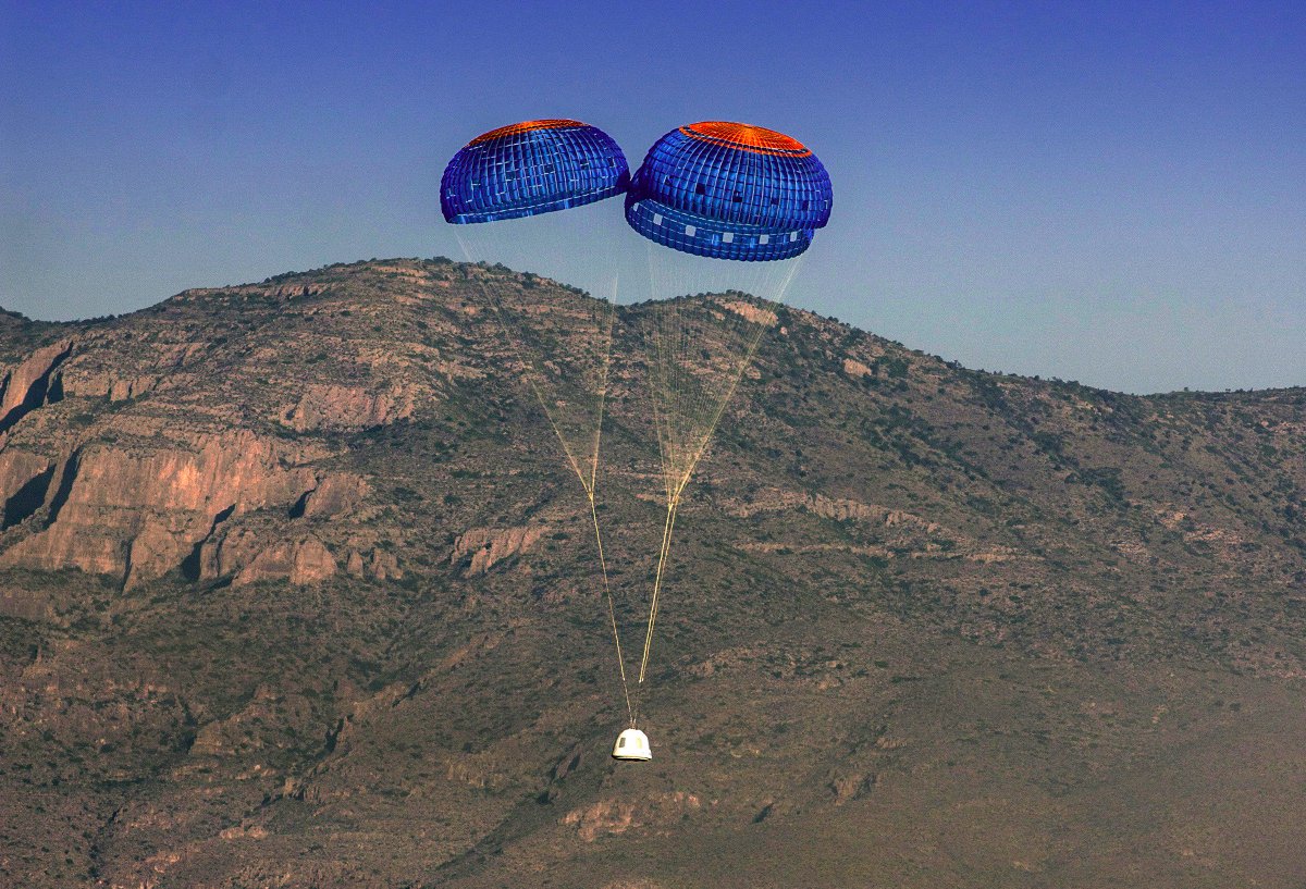 Капсула приземлилась на двух парашютах