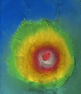 The image is a false-color mosaic of photos taken by the Thermal Emission Imaging System (THEMIS), a multi-wavelength camera on NASA's Mars Odyssey orbiter.