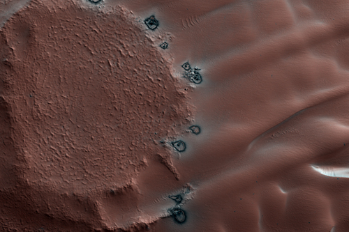 Nili Patera with Bright and Dark Bedrock Exposures Between Dunes (MRO/HiRISE) - imaged 6 Jun 2007
