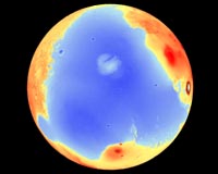 ЦитироватьA view of Mars as it might have appeared more than 2 billion years ago, with a low-latitude ocean filling the lowland basin that now occupies the north polar region.