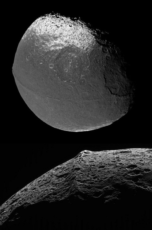 Новые фотографии Япета были получены "Кассини" в один из последних "нырков" через кольца Сатурна, с расстояния в примерно 2,6 миллиона километров от поверхности Япета. На этих снимках можно увидеть не только "регион Кассини", темное пятно на поверхности "черно-белой" луны, но и ряд крупных кратеров у его полюсов и необычную "борозду" на экваторе Япета, аналогов которой нет ни на одном другой луне Солнечной системы.