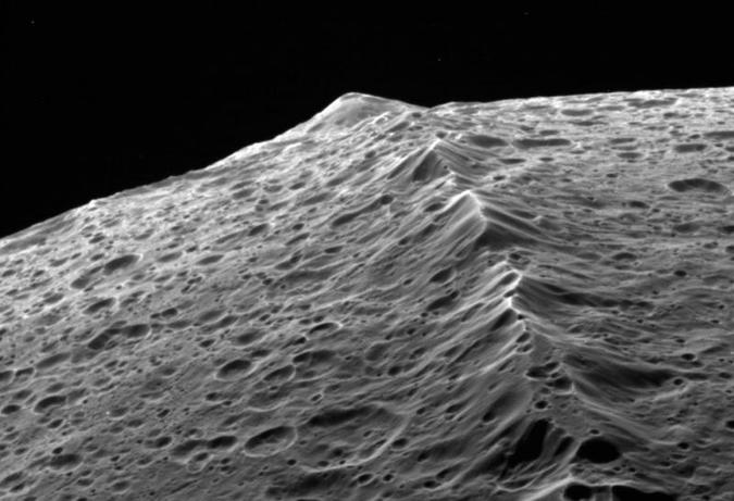 В новом исследовании ученые предположили, что горный хребет — это скопившийся щебень бывшего кольца газового гиганта Сатурна. Хребет имеет протяженность 1400 км, а некоторые пики возвышаются на 100 километров.