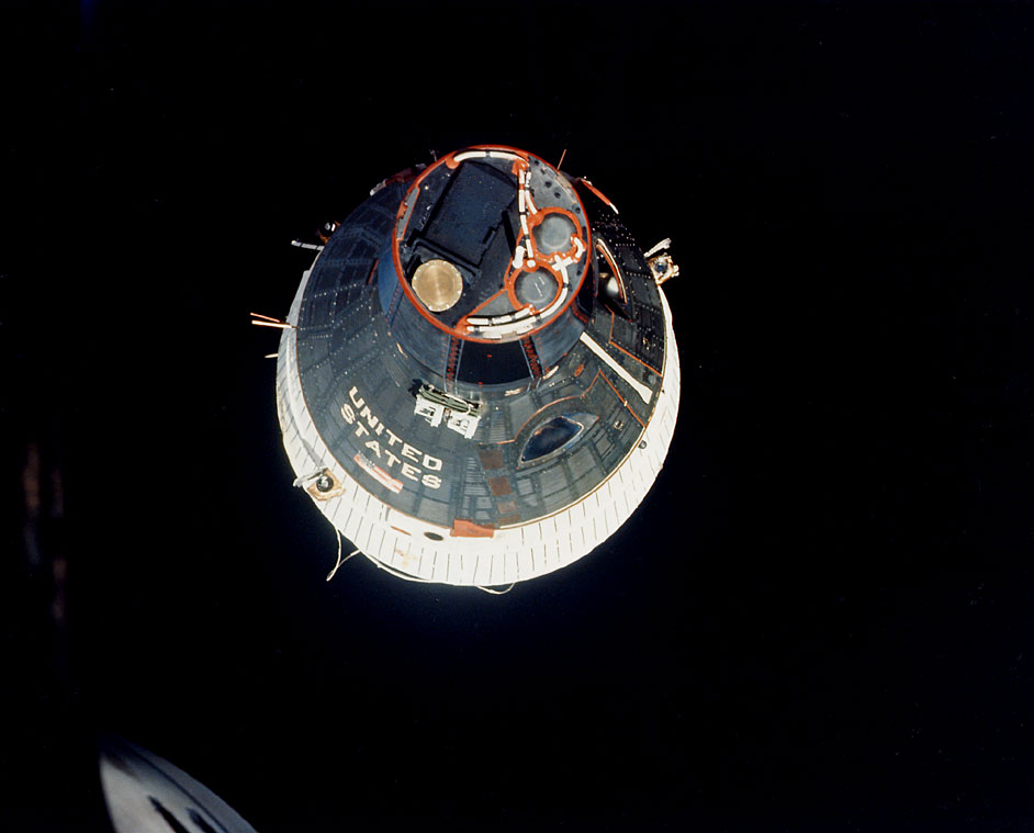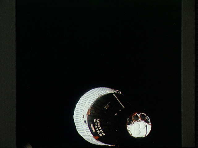 Объект на этом снимке - действительно в том месте, где на стр. 2-15 ( схема S/C 7 = Gemini 7 ) показан лючок 85 - радиометр. Правда, на схеме с размером нарисованного лючка серьёзно "не угадали", но это мелочи.