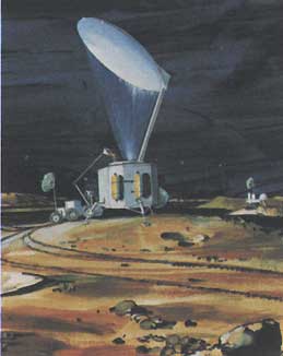 На аппарате, совершившем посадку на полюс, установлен гелиостат; накопленное тепло используется для плавления лунных материалов, доставляемых автоматическим луноходом.