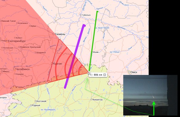 Но наблюдатель с Петропавловского тоже оценивает на своей фотке направление полета как Петропавловский - Ишим.