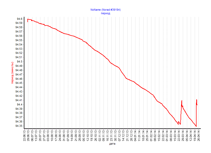 25-27 марта поднял орбиту на 5 км, 21-22 апреля маневр повторился. Походу аппарат целенаправленно удерживает период, не давая ему опуститься ниже 94.35 мин.
