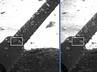 Сразу после посадки "Феникса" на Красную планету ученые обнаружили на многих конструкциях зонда непонятные образования, которые со временем увеличивались в размерах. Некоторые исследователи предположили, что эти образования представляют собой капли грязной воды с повышенным содержанием солей, в частности, перхлоратов, которые "Фениксу" позже удалось обнаружить на Марсе.