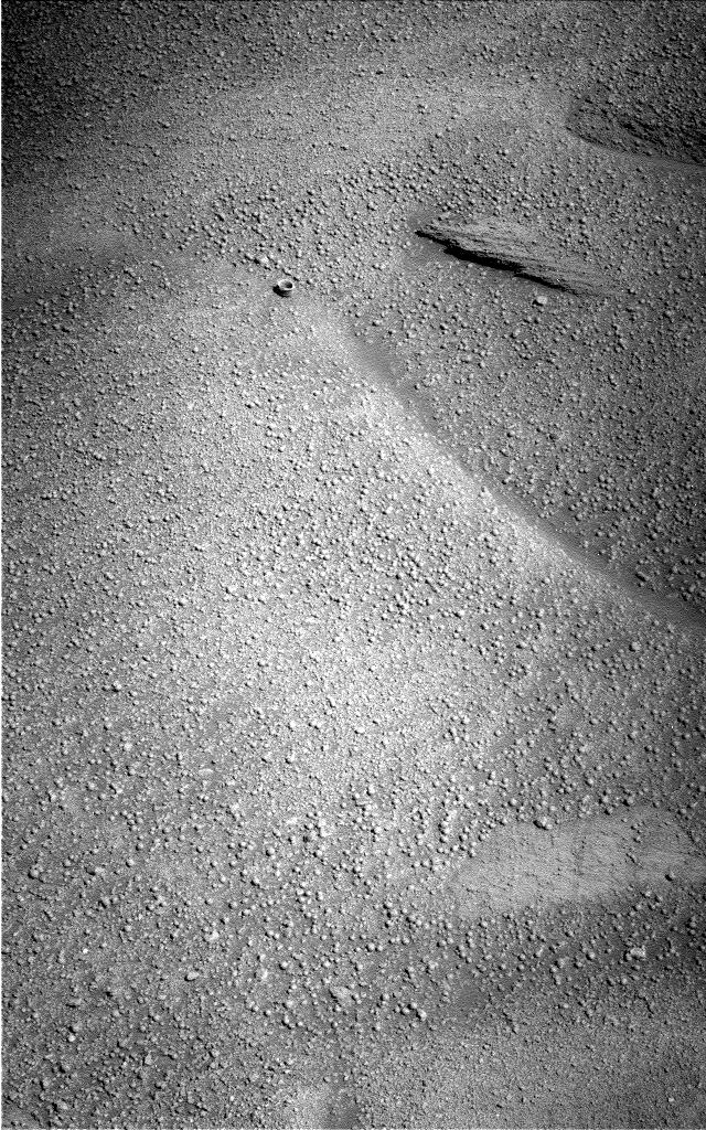 На этом снимке шарики средним диаметром 2-4 см? "На глаз" - миллиметров пять (учитывая угол наклона снимка дающий соответствующее расстояние до камер ровера)...