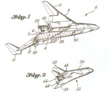 "Boeing is believed to be one of several major aerospace companies involved in the Blackstar program. On Oct. 14, 1986, Boeing filed a U.S. patent application for an advanced two-stage space transportation system. Patent No. 4,802,639, awarded on Feb. 7, 1989, details how a small orbiter could be air-dropped from the belly of a large delta-winged carrier at Mach 3.3 and 103,800-ft. altitude." - Aviation Week