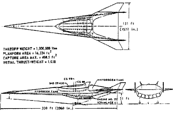 При достижении скоростей и высот, на которых ПВРД становились неэффективны, включались маршевые водородные ЯРД, которые и осуществляли вывод АКС на низкую орбиту. Блок из 6 ЯРД размещался над воздушными трактами ПВРД внутри хвостовой части фюзеляжа, все двигатели использовали одни и те же регулируемые сопла. В днищевой части размещено 6 ЖРД "донной" тяги обеспечивающих режим "подскока".