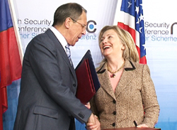 C.B.Лавров и Х.Клинтон произвели обмен грамотами о ратификации подписанного в Праге 8 апреля 2010 г. российско-американского Договора о СНВ и подписали соответствующий протокол. С этого момента Договор официально вступил в силу...