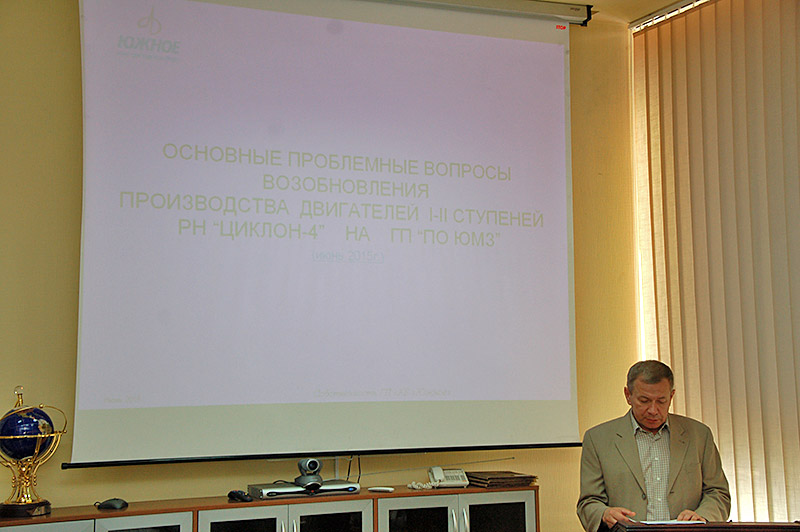 Во время заседания был рассмотрен вопрос о состоянии выполнения работ по восстановлению производственной базы и специализированных участков по производству двигателей ракеты-носителя «Циклон-4» на ГП «ПО «Южный машиностроительный завод» им. А.М. Макарова».