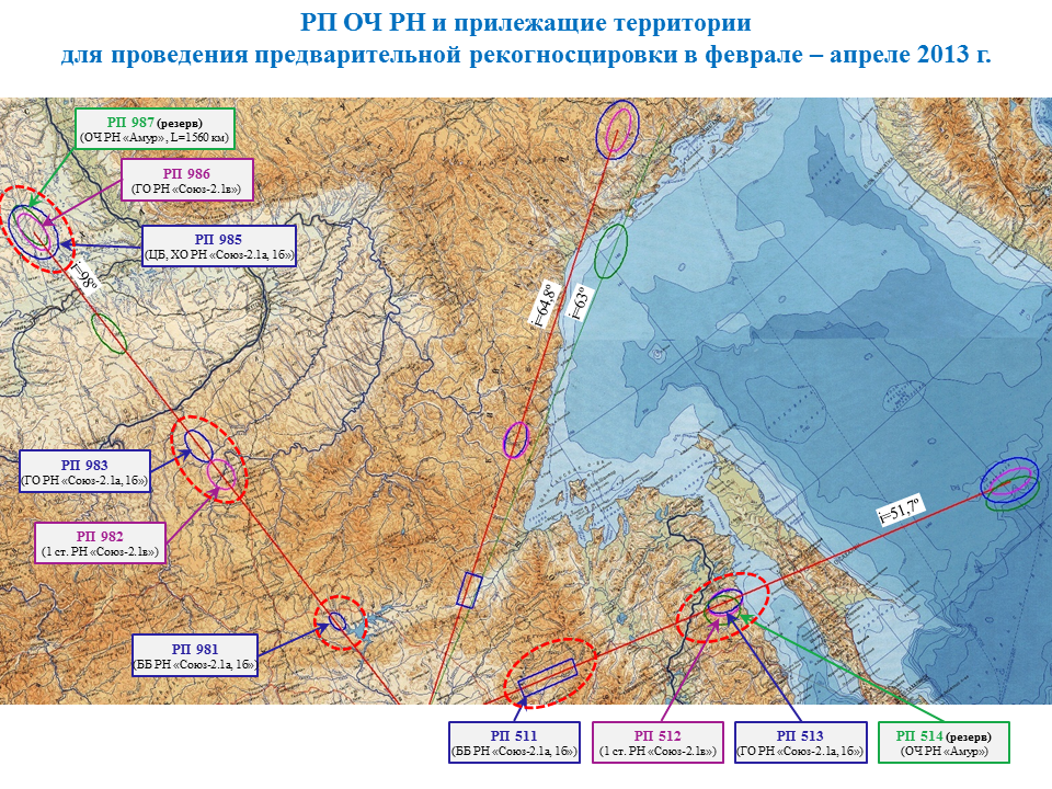 Что интересно, РП для "А" совпадают с РП для ГО "Союза". Далеко улетают УРМы первой ступени. Центральный УРМ вообще падает в океане. Судя по карте, можно предположить, что УРМы долетают до Земли в виде обломков, так как высота и скорость к моменту отделения велики. К сожалению, циклограммы пуска "А" с Восточного у меня нет.