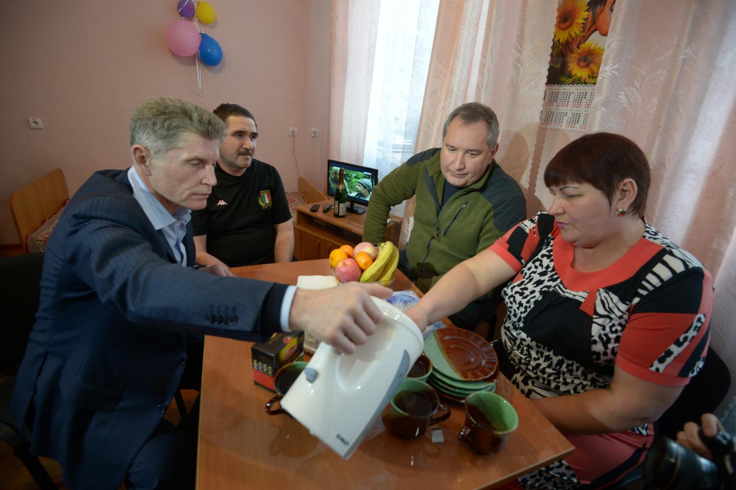 Вопросы готовности объектов Восточного, строительства и дальнейшего развития космодрома обсуждались в ходе рабочей поездки Заместителя Председателя Правительства Российской Федерации Дмитрия Рогозина в Углегорск Амурской области. В рабочей поездке вице-премьера приняли участие директор Спецстроя России Александр Волосов, первый заместитель Министра строительства и жилищно-коммунального хозяйства Российской Федерации Леонид Ставицкий, руководитель Федерального космического агентства Олег Остапенко и другие официальные лица. В рамках посещения космодрома состоялся осмотр объектов строительства: технического и стартового комплексов, а также медицинских объектов Федерального медико-биологического агентства, кроме того прошла встреча со строителями космодрома и совещание.