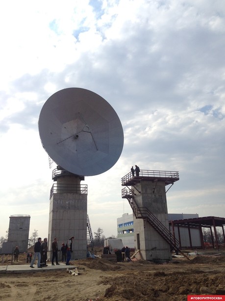 Около десятка таких антенн расположено вокруг здания. Некоторые уже смонтированы, под другие заливают бетонные стойки.