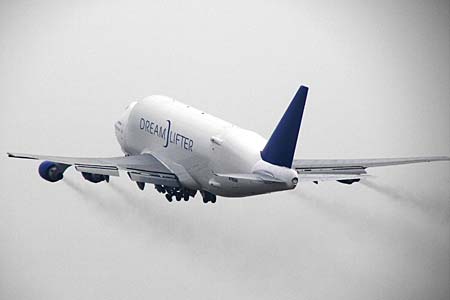 Чего смешного? Что на снимке нет никакого "грузового контейнера!? Или что Дримлифтер на самом деле спроектирован в Российском центре Боинга?