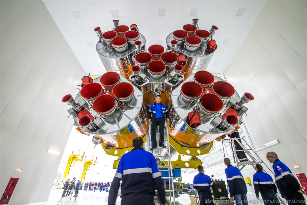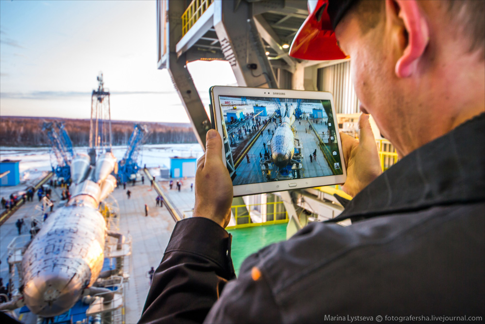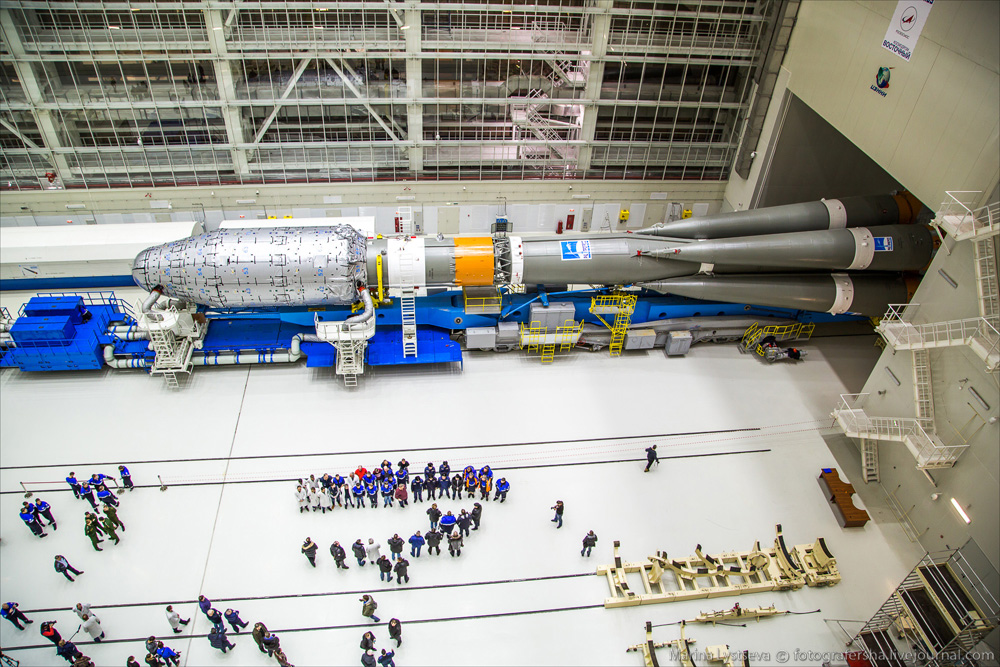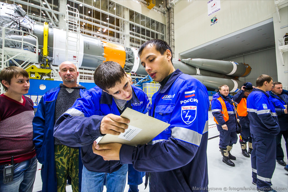 Внизу можно наблюдать построение специалистов космических предприятий, готовивших ракету, сейчас как раз идут последние наставления и подписания актов приемки-передачи.