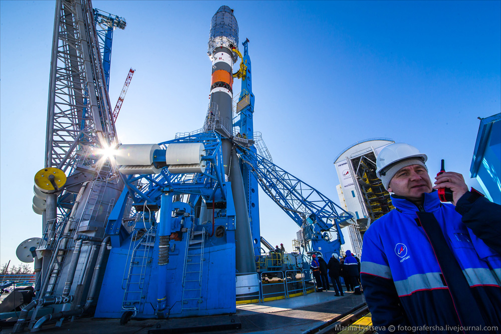 Если на Байконуре нам давали фотографировать ракету буквально с расстояния пяти метров, то здесь "за ров отойдите", а он в 15 метрах.