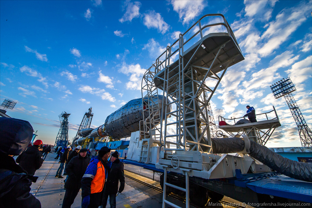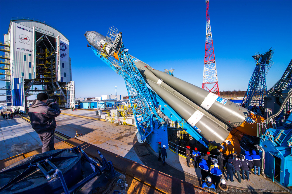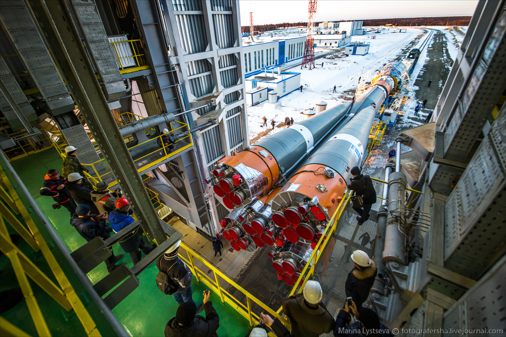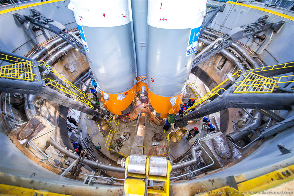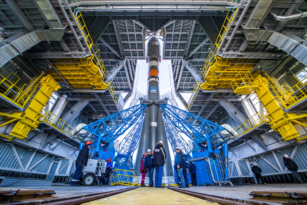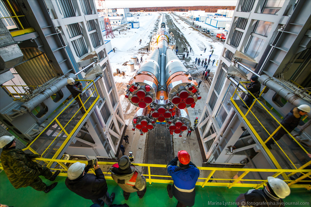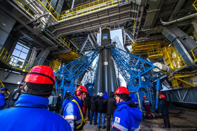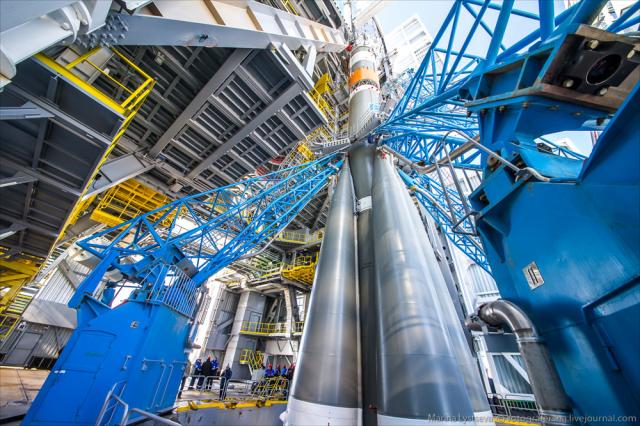 Монтаж ракеты на стартовый площадке проводят с хирургической точностью. Чтобы привести ее в вертикальное положение, специалисты "Роскосмоса"в течение нескольких часов по сантиметрам сближают агрегаты комплекса.